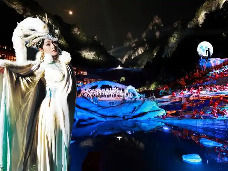 In the evening, they watch the Tianmen Fox Fairy Landscape Real Scene.